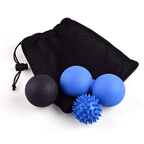 3 Massage Balls Set, Spiky, Lacrosse ball and Peanut Roller
