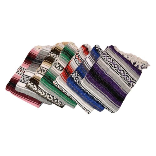Perfect blanket for throw rugs, yoga mat or for meditation. Generous 56 inches; x 82 inches; size ideal for commute. Assortments of colors priced for resale at $ 49.99 for five + handling and packing fee $ 6.77. -FREE shipping !!!(We pay $ 22.92 for shipping) This classic Mexican blanket has been a trademark of Mexico heritage for centuries. The Mexican people have used these blankets for many different things including: Wall decoration, furniture cover, room partition, mule saddle or just as a plain old blanket. People found warmth and style with these traditional blankets draped over their shoulders. Other even went as far as cutting a hole in the midst of the blanket so they could wear this Mexican blanket as a poncho. Made of 100% cotton these Mexican siesta blankets are hand woven and feature only natural dyes. Our Mexican blankets are hand woven and made of soft, absorbent cloth and are easily washable. Our Premium Yoga Blankets come in several colors and designs. Please take into account that these blankets are made in different villages right through Mexico so there may be some slight variations in the pattern from the picture shown. Mexican blankets are used incessantly in Iyengar and restorative yoga practices. They may be able to be used folded under sitting poses to cushion bones and joints, underneath you in repose positions to insulate from cold flooring, rolled or folded to provide improve in poses, or just as a cover to warm you in Savasana. Our Premium Blankets are made with a tight weave, so these blankets are thicker and warmer than our Classic. Along with their larger size, they’ll offer more cushioning and insulation. These blankets are also great for use at the beach, a picnic or to cover an out of doors table and of course for providing warmth as a blanket. *000011*