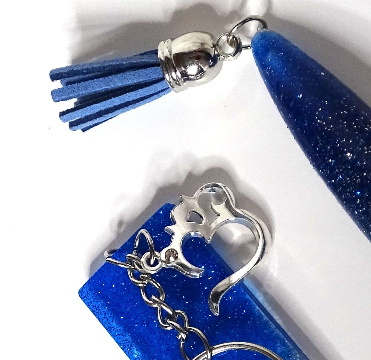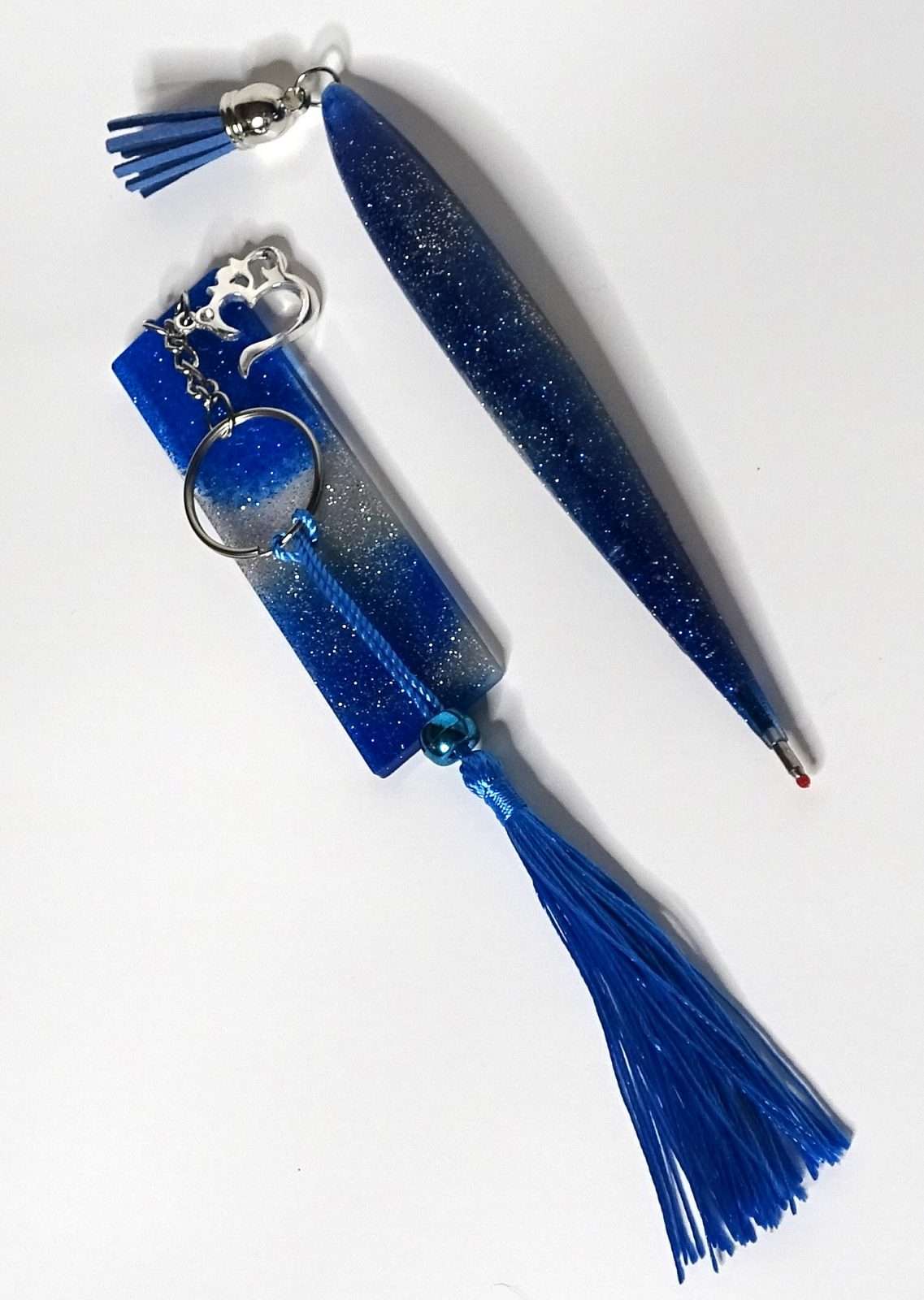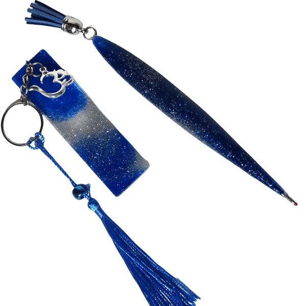 • Resin keychain made with epoxy, resin dye, and glitters ~3.75″.