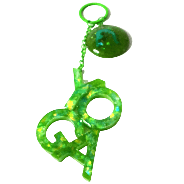 YOGA word is handmade of epoxy resin, resin dye, and glitters with a blue ring-keychain, and a yoga pendant.