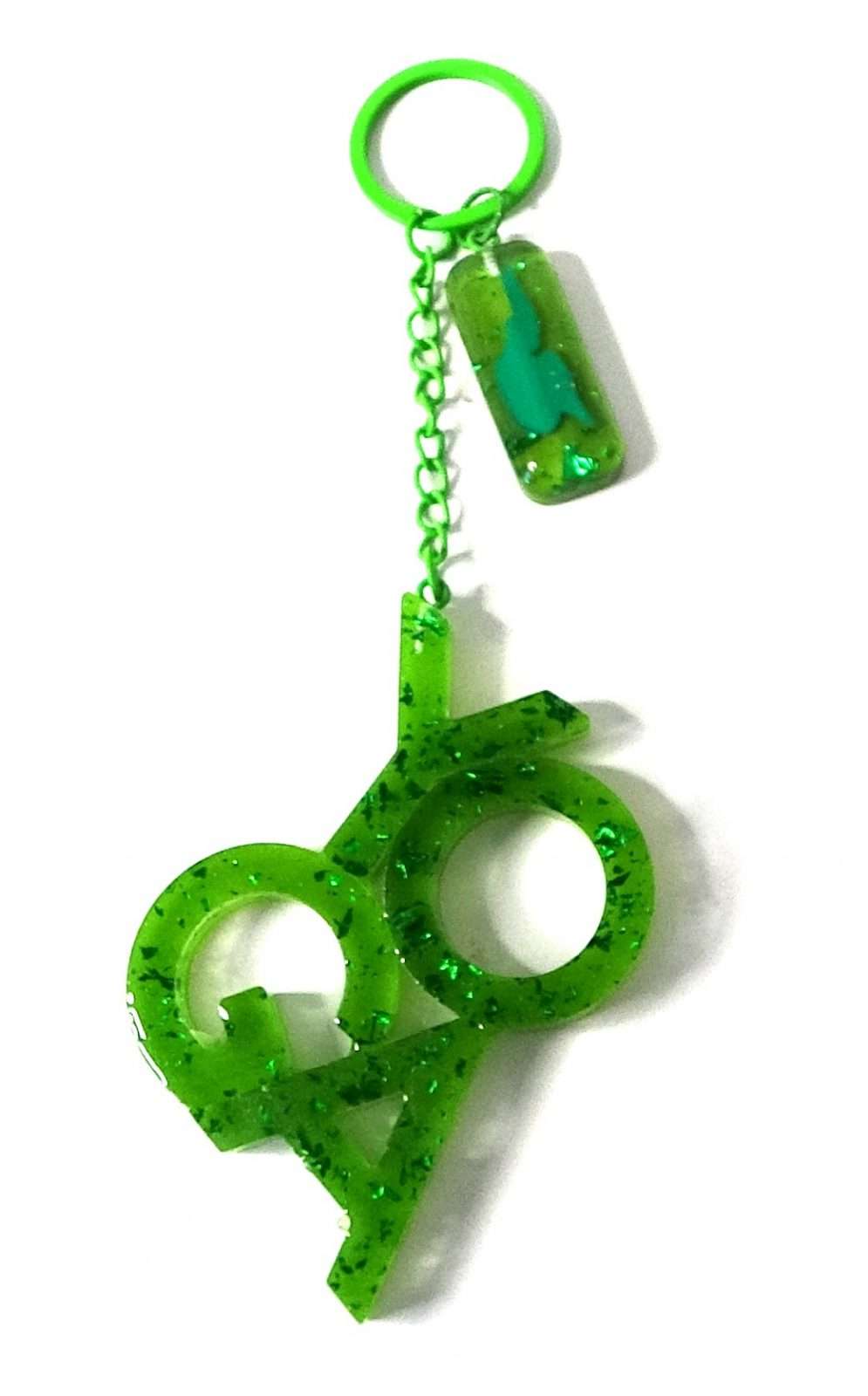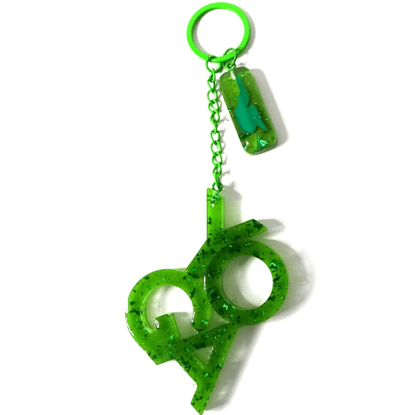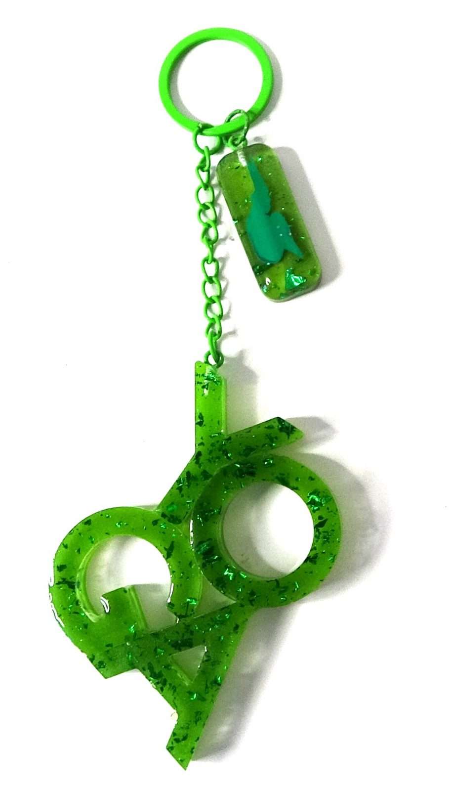 YOGA word is handmade of epoxy resin, resin dye, and glitters with a green ring-keychain, and a yoga pendant.